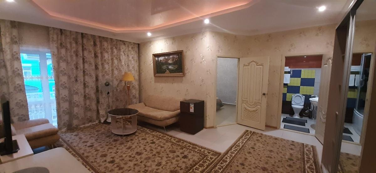 Номер категории Люкс общей площадью 42 кв. м., расположенный на втором этаже, состоит из двух комнат – спальни; просторной гостиной с оригинальным освещением; санузла, оборудованного современной многофункциональной душевой кабиной; и балкона. Рассчитан на проживание до 3-х человек.